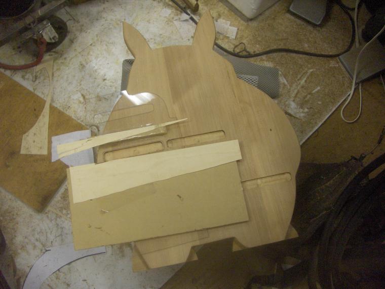 I wanted to use natural wood colors for the various bits of Totoro. I don’t know why I do this except that I rather like wood’s natural beauty, and many of my staining projects seem to come out somewhat blotchy. So I went to the Minton’s lumber to get some darker looking wood. I settled on Alma Rose. I have no idea what kind of wood that is, but it was brownish, with even grain, it wasn’t heavy, and it was comparatively cheap. (Less then $2 a board foot) So I was all over it.